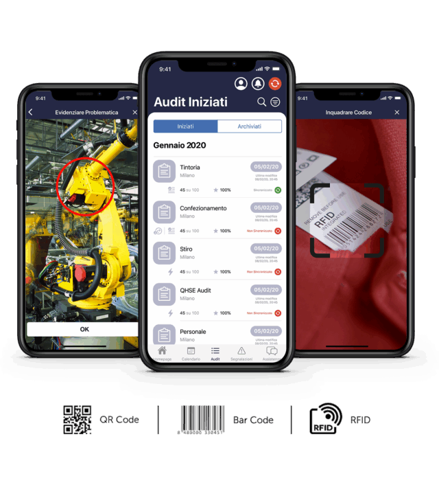 Richiamo della checklist anche offline da un codice prodotto univoco(QR Code, BARCODE, RFID, Data Matrix)