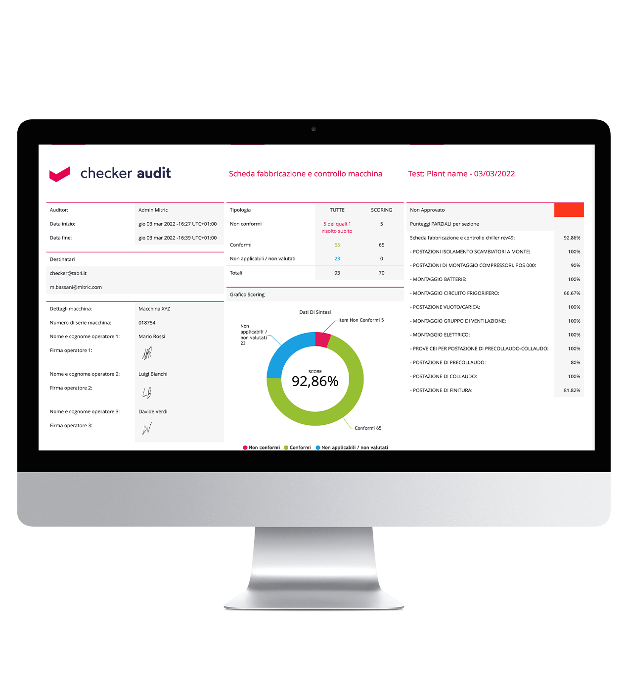 Redigere piani d’azione tempestivi on site, distribuirli per competenza e tracciare tutto lo storico delle azoni correttive, dalla loro creazione, validazione e chiusura.